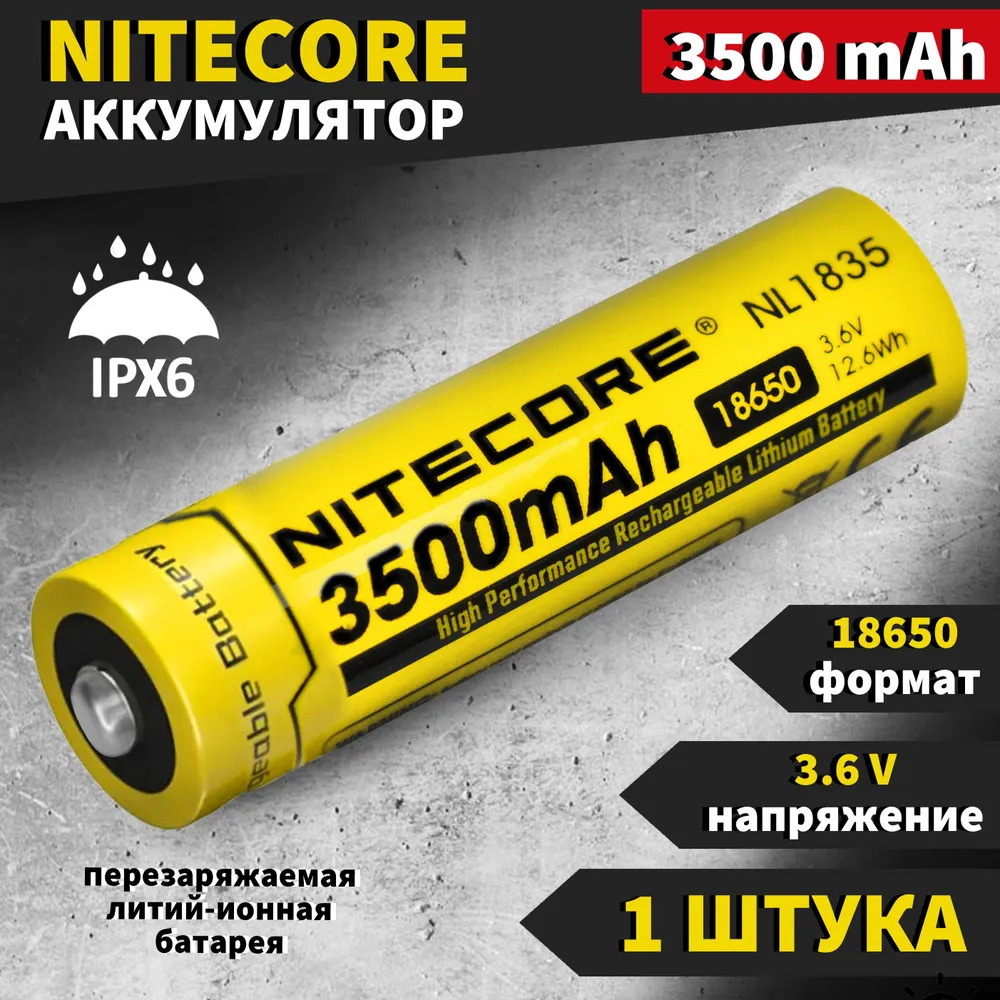 Аккумулятор Li-Ion NITECORE 18650 3500 mAh 3.6V (1 штука) / Перезаряжаемый литий-ионный элемент питания с пимпочкой (защищенный) / Аккумуляторная батарейка литиевая
