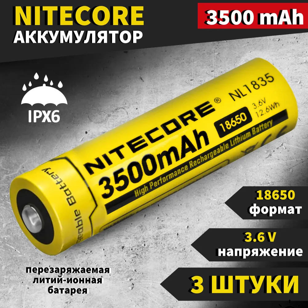 Аккумулятор Li-Ion NITECORE 18650 3500 mAh 3.6V (3 штуки) / Перезаряжаемый литий-ионный элемент питания с пимпочкой (защищенный) / Аккумуляторная батарейка литиевая