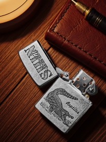 Стильная и прочная бензиновая зажигалка. Выполнена в винтажном стиле.