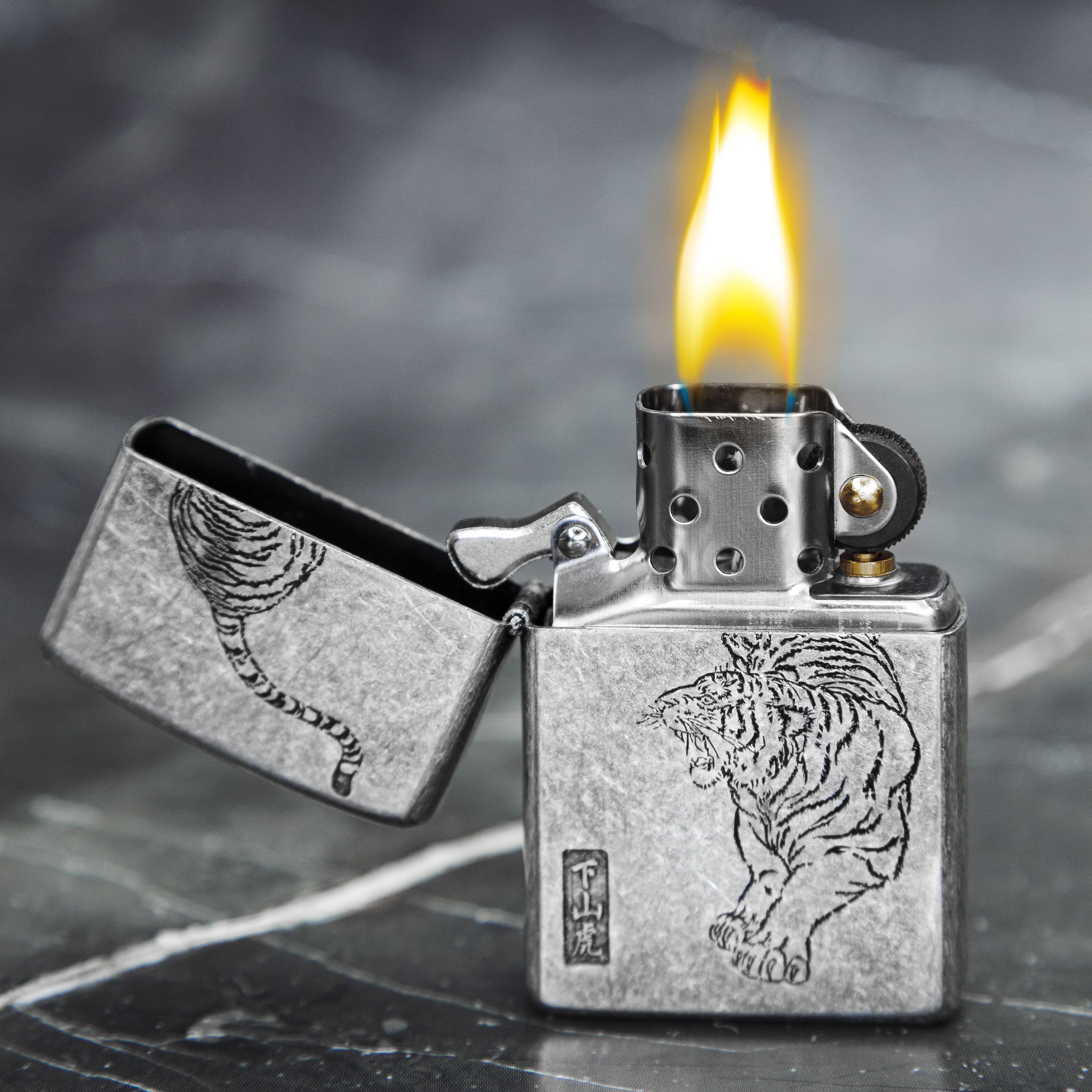 Бензиновая металлическая винтажная зажигалка "Тигр"