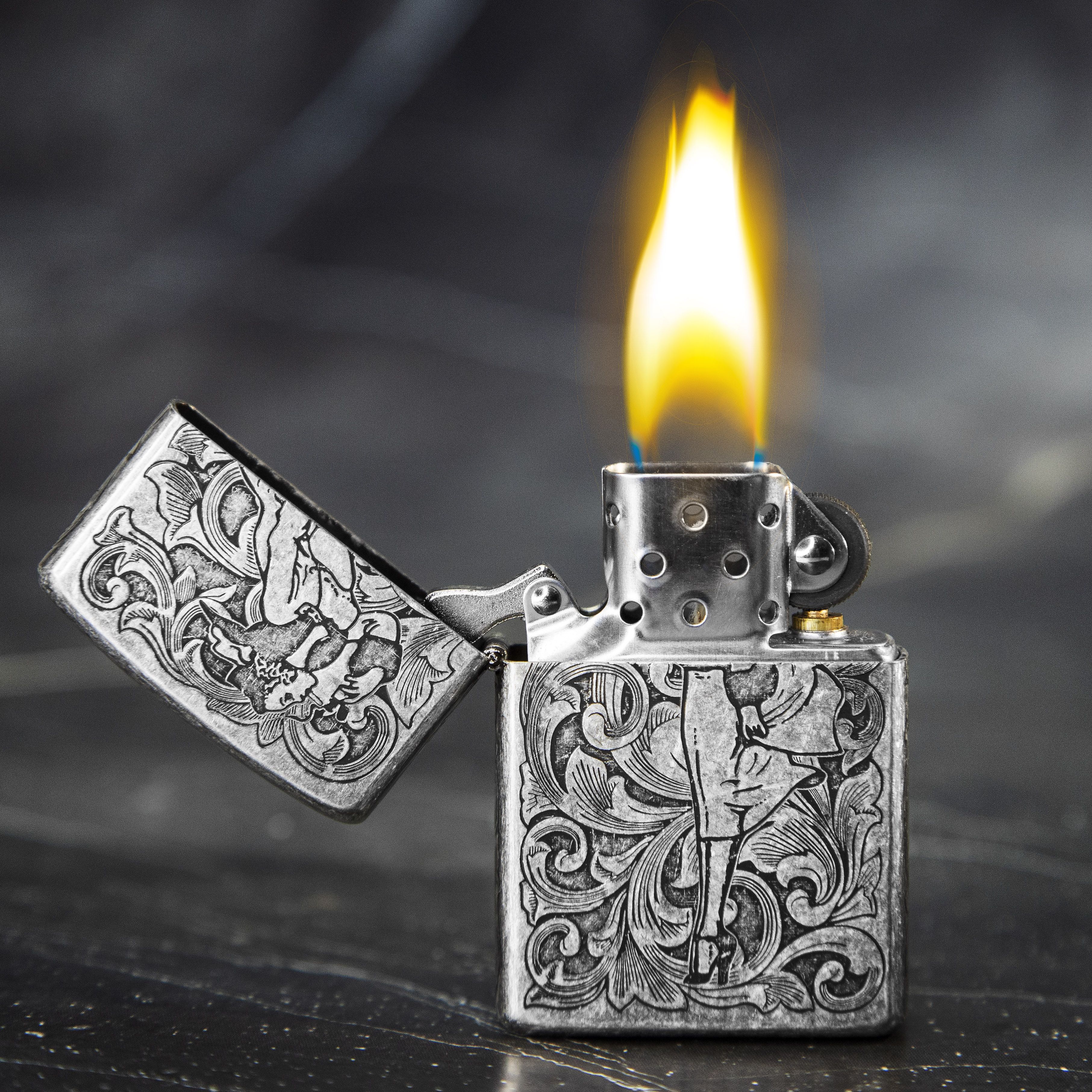 Долго держит пары бензина, не боится ветра и воды. Такая зажигалка будет полезным спутником путешествий и походов, а также она всегда пригодится в повседневной жизни.