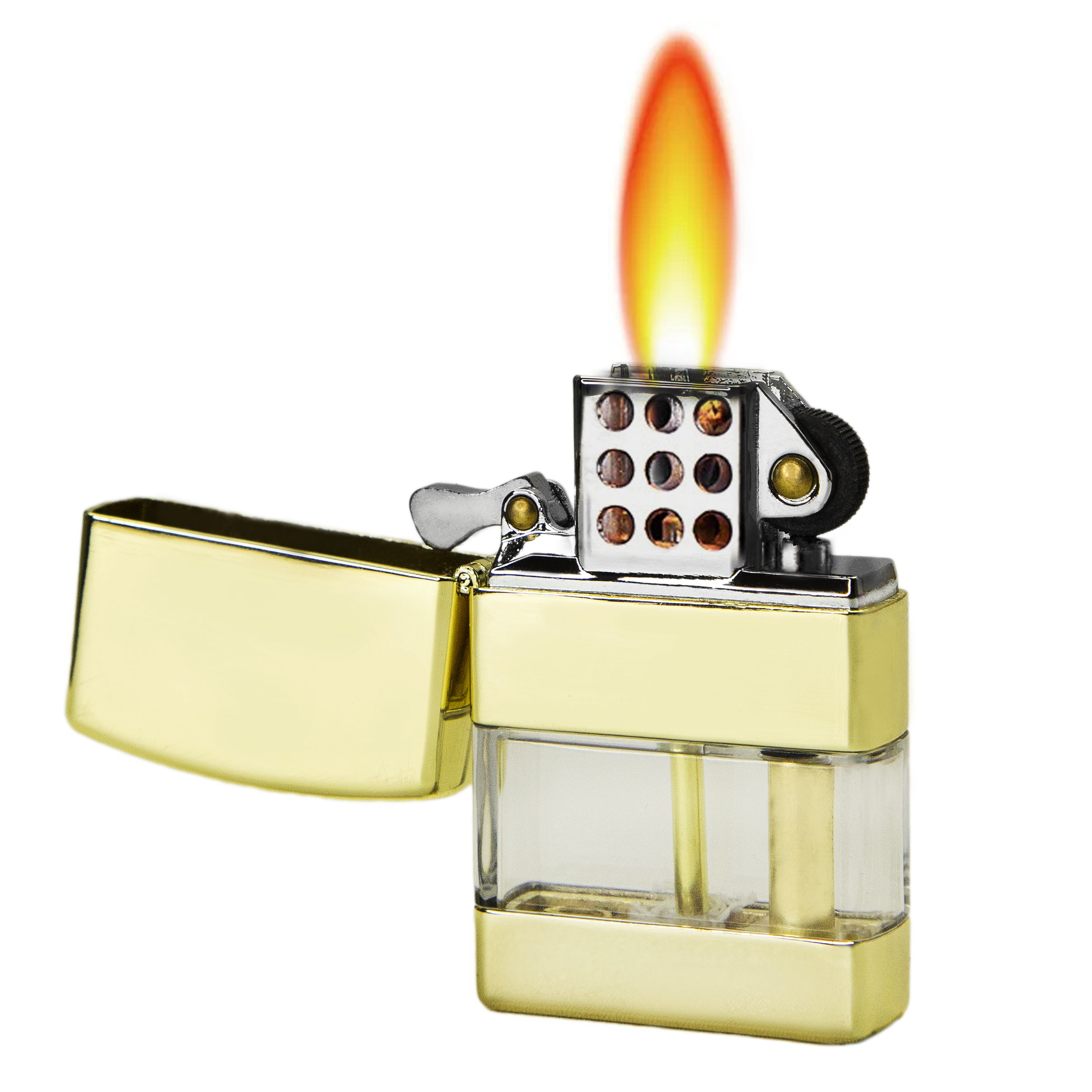 Холостое испарения бензина сведены к минимуму, благодаря чему зажигалка может работать без дозаправки многие месяцы. Связано это с тем, что вместо пропитки (ваты) для паров бензина в данном типе зажигалок используется резервуар с жидким топливом, что увеличивает время работы такой зажигалки от одной заправки в сотки раз по сравнению с обычной зажигалкой.
