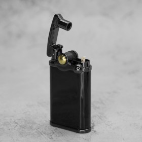 • При нажатии на кнопку-рычаг, откидывается крышка, одновременно высекаются искры и поджигается фитиль.