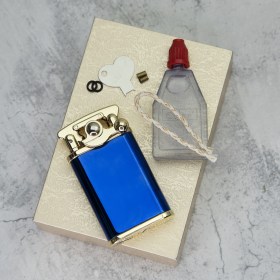 Бензиновая сверхдолгая автоматическая стальная ретро зажигалка (синий) / Фитиль, кремний в комплекте