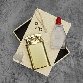 Бензиновая сверхдолгая автоматическая стальная ретро зажигалка (золото) / Фитиль, кремний в комплекте