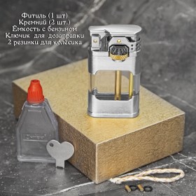К зажигалке прилагаются комплектующие, которые располагаются в коробке под зажигалкой, а именно: