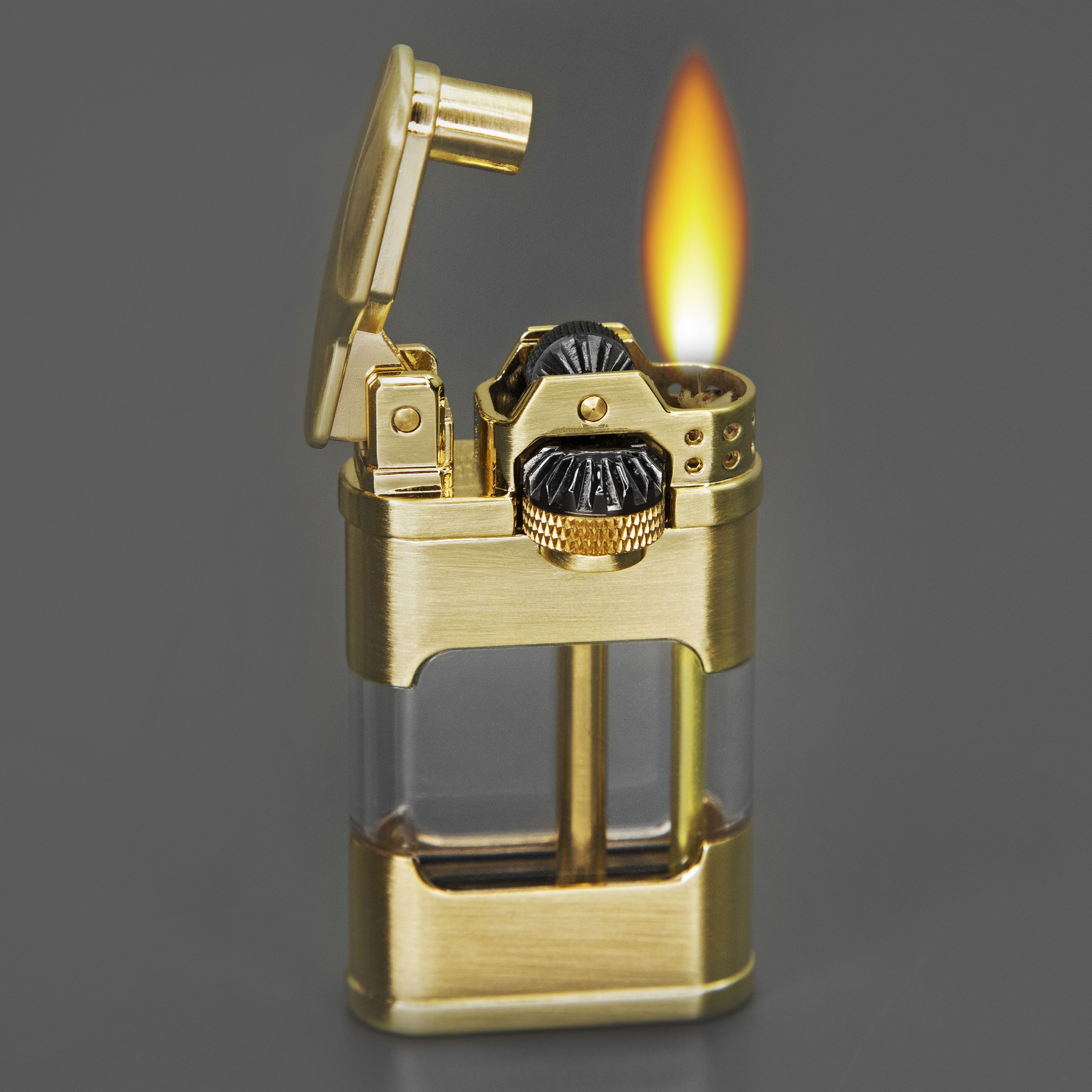 Данная зажигалка долго держит пары бензина, не боится ветра и воды, ведь вместо пропитки (ваты) для паров бензина в данном типе зажигалок используется резервуар с жидким топливом, что увеличивает время работы такой зажигалки от одной заправки в сотки раз по сравнению с обычной зажигалкой.