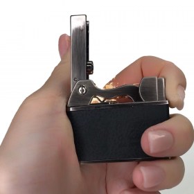 При нажатии механического рычага, штифт с кресалом высекает искру из кремния на хлопковый фитиль, возникает устойчивое пламя по типу керосиновой лампы.