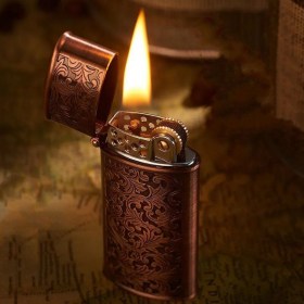 Бензиновая винтажная ретро зажигалка с орнаментом акант (медь) + кремний фитиль в наборе