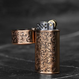 Стильная и прочная бензиновая зажигалка. Выполнена в винтажном стиле, с очень красивым объемным орнаментом "Акант".
