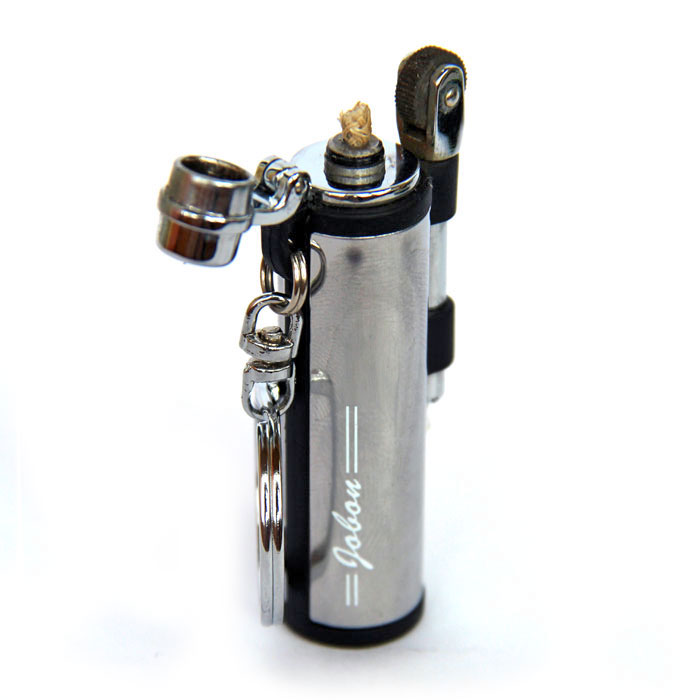 Заправляется бензином, колпачок из намагниченного металла защищает от испарения бензина.