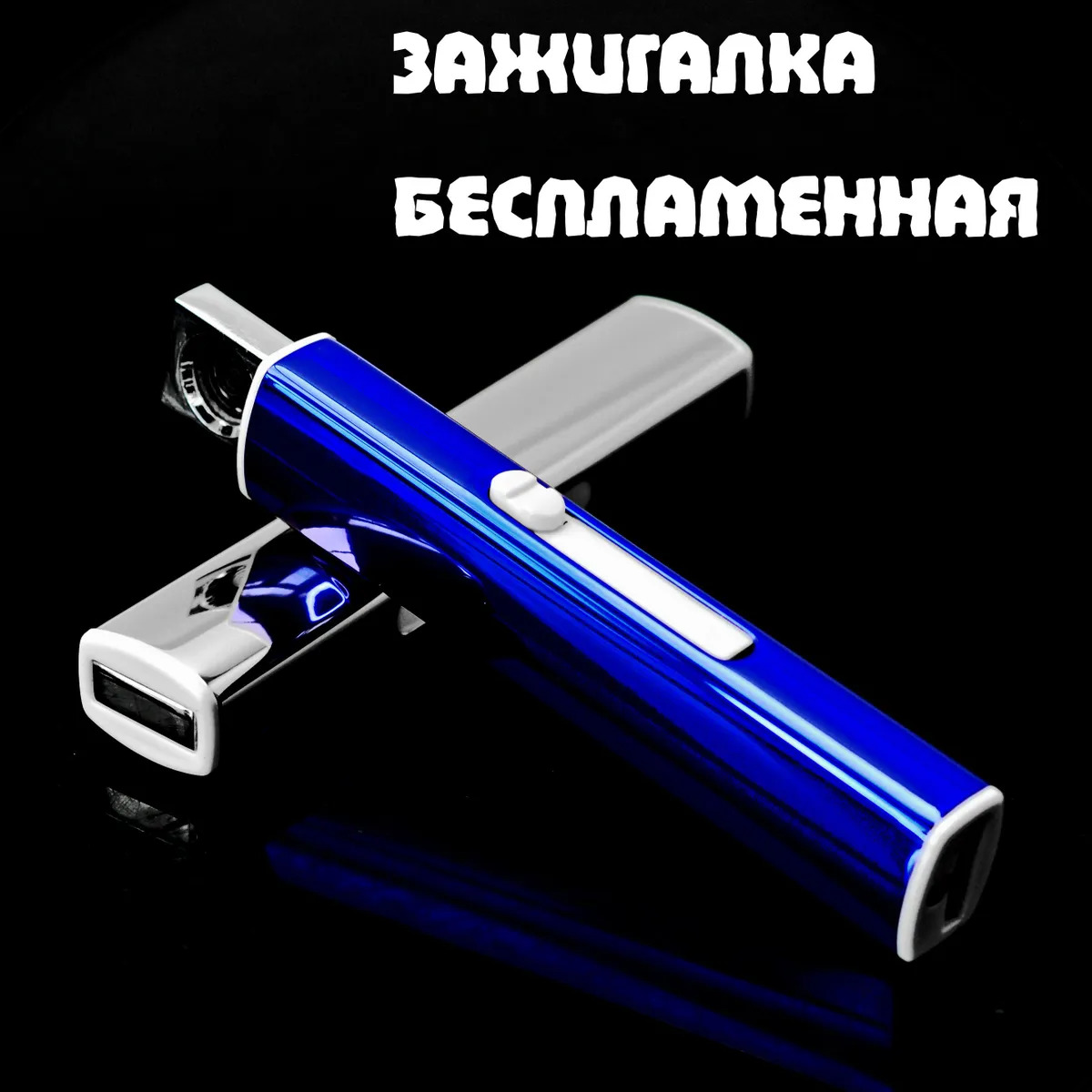 Беспламенная зажигалка ветрозащитная с портом USB металлическая (синий)