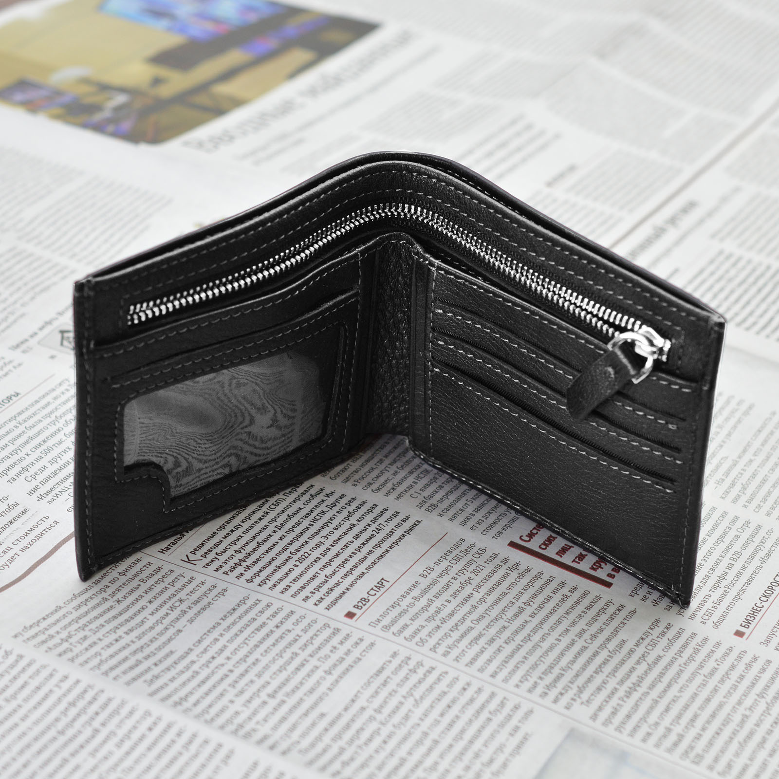 Имеет отделения для банкнот – одно из них на молнии (помещаются рубли, доллары, евро),