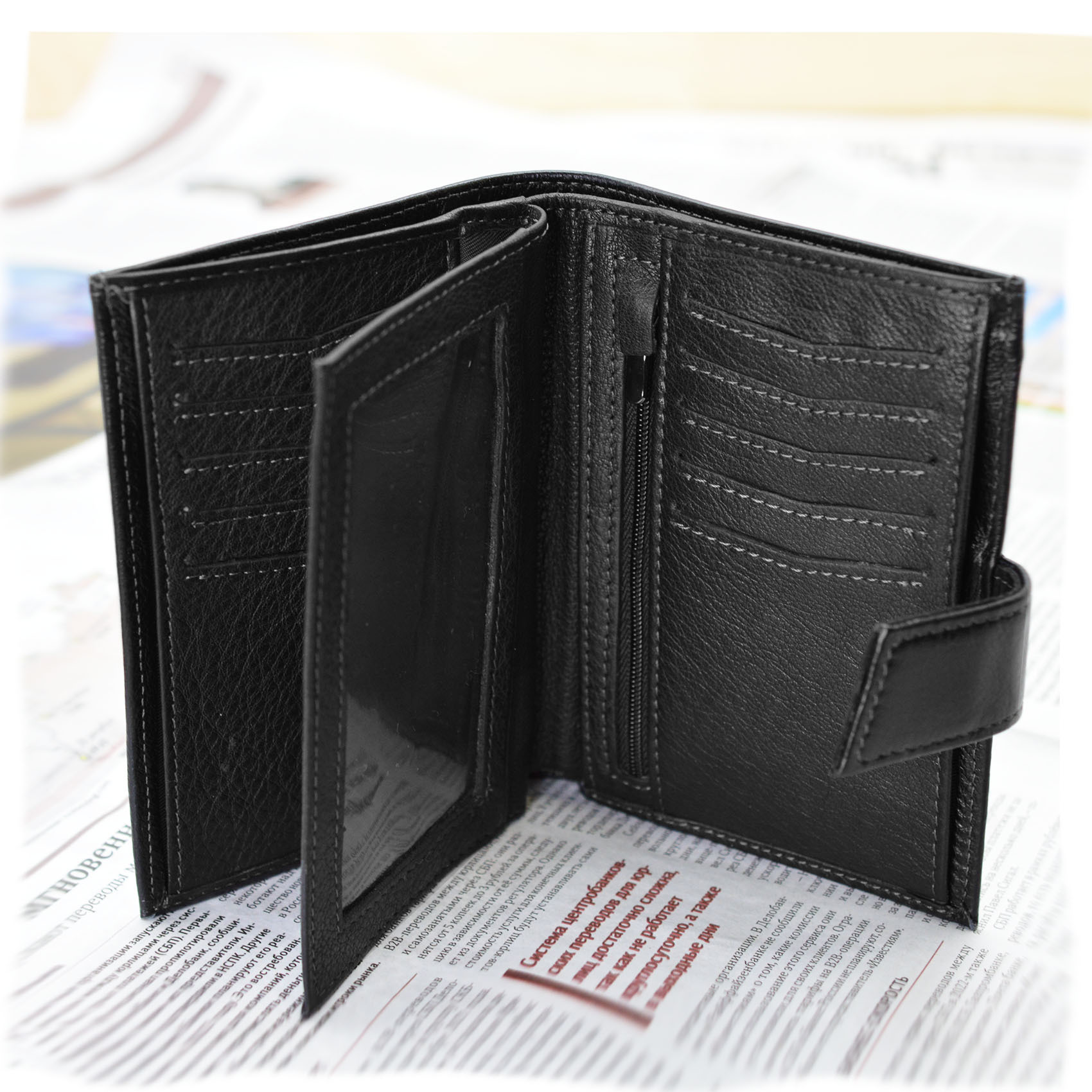 Имеет отделения для банкнот – одно из них на молнии (помещаются рубли, доллары, евро),