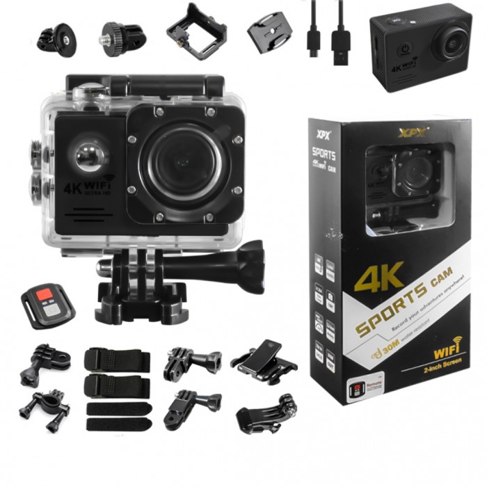Камера водонепроницаема при работе на глубине до 30 м. Устройство укомплектовано большим количеством дополнительных аксессуаров. Камера имеет встроенный Wi-Fi и пульт дистанционного управления.