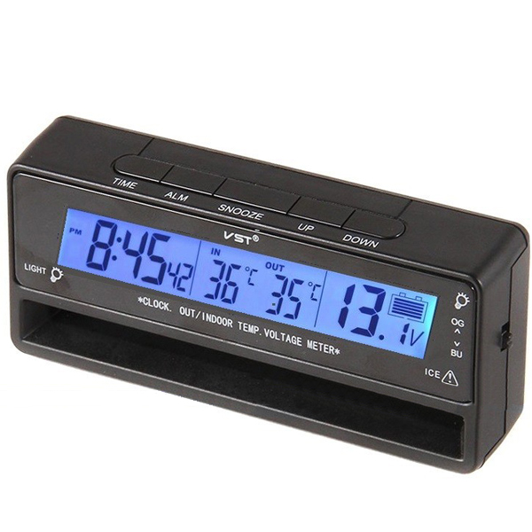 Часы имеют встроенный термометр, для измерения внутренней и наружной температуры. При питании часов от автомобильного прикуривателя на дисплее отображается полная информация: время, дата, температура и напряжение питания. При питании от встроенной батареи, для экономии её заряда, дисплей отображает только показания времени.