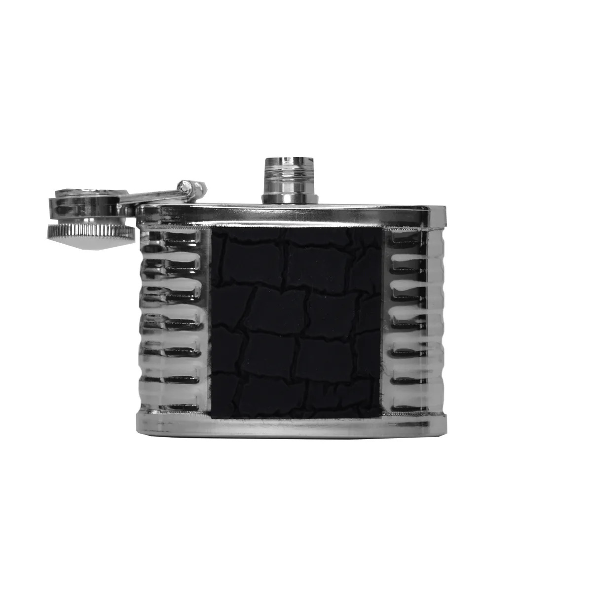 Фляга стальная плоская 2 oz (60мл.) со вставкой "рептилия" черный