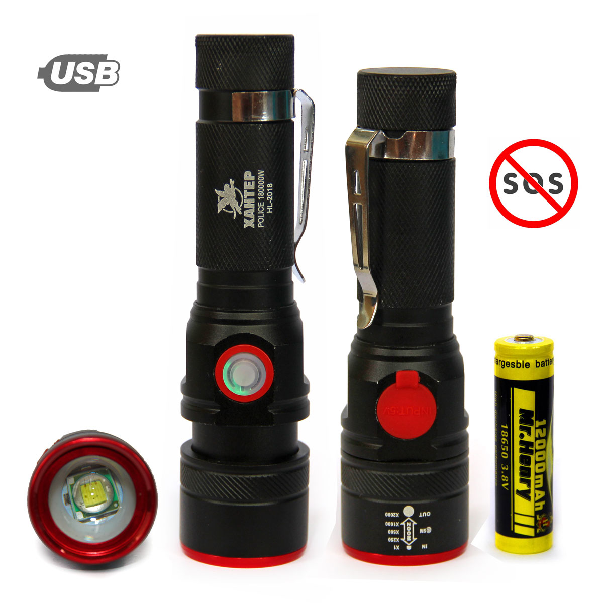 Самый компактный фонарь на этом диоде. Данный светодиод имеет впечатляющую мощность, обеспечивая удобное освещение любого помещения либо открытой местности. Встроен порт для зарядки USB, и скрытый режим SOS