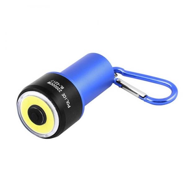 Корпус изготовлен из легкого ударопрочного алюминиевого сплава, что позволяет продлить эксплуатационный срок товара. Надежный брелок-карабин обеспечивает хорошую фиксацию. Конструкция фонарика защищена от проникновения воды. В качестве элементов питания используют 3 батарейки типа ААА. Кнопка включения расположена в передней части устройства.