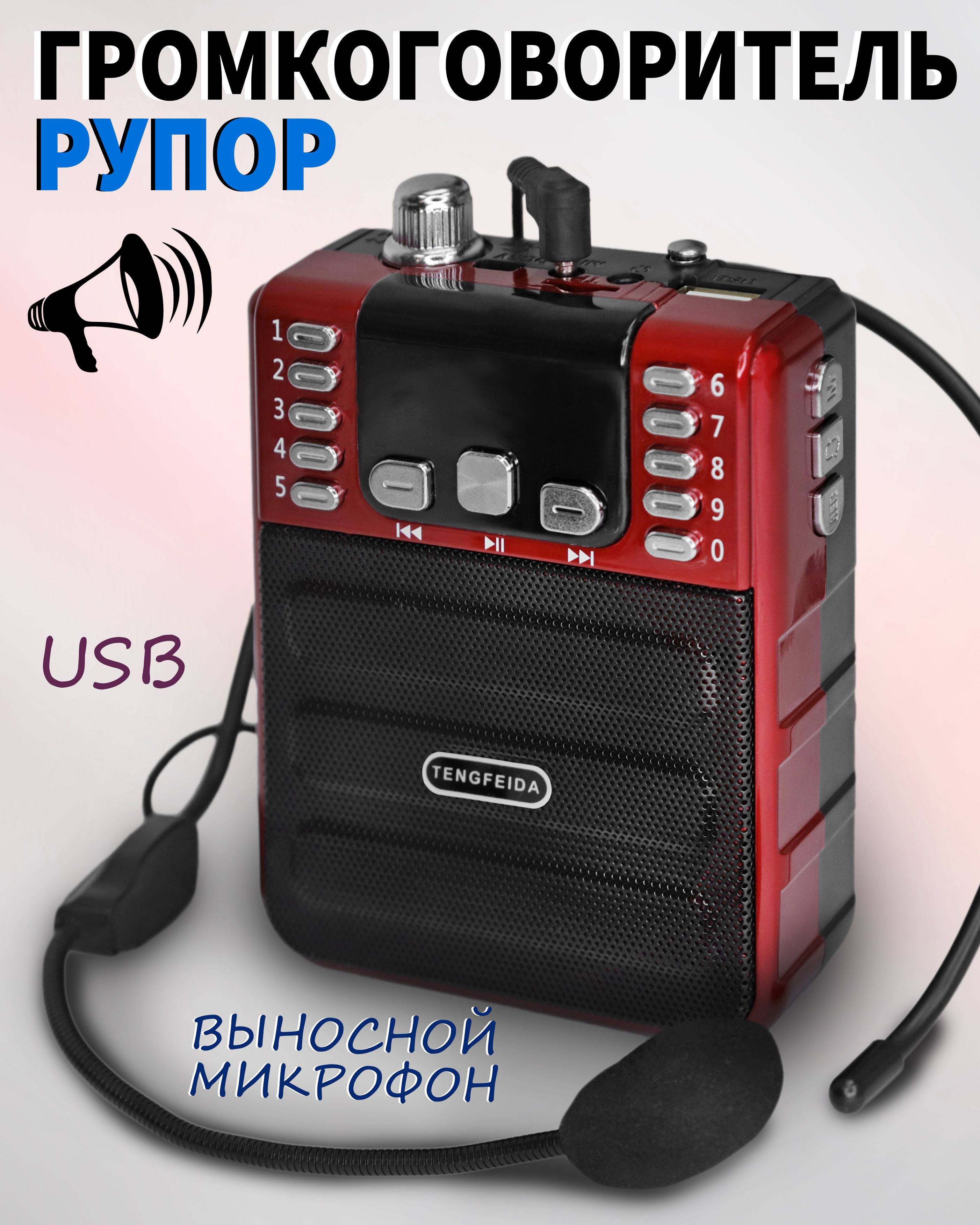 Разъём 3.5мм позволяет использовать рупор как MP3 плеер;