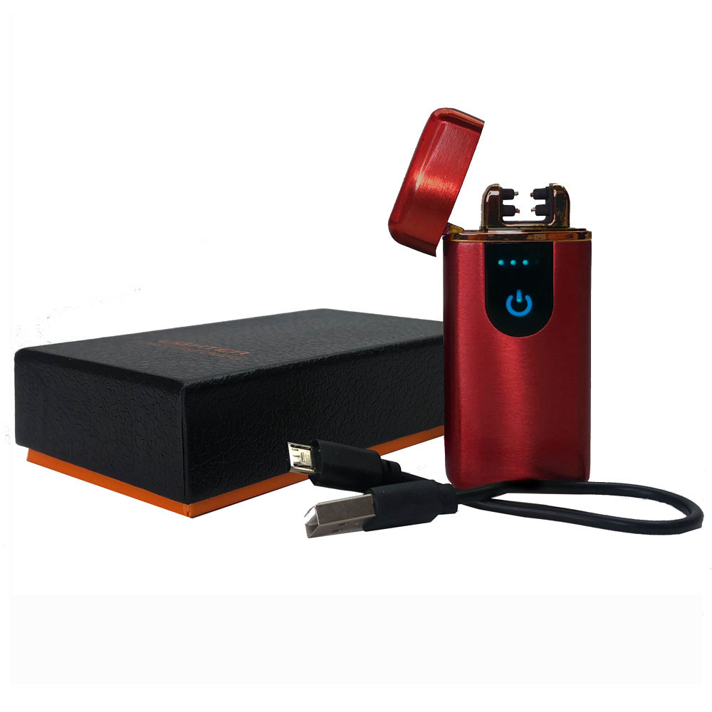 Импульсная электрическая USB зажигалка сенсорная две дуги, ветрозащитная (красный)