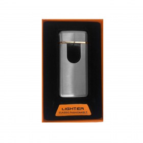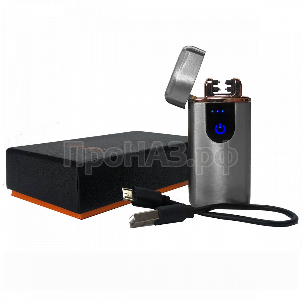 Импульсная электрическая USB зажигалка сенсорная две дуги, ветрозащитная (серый)
