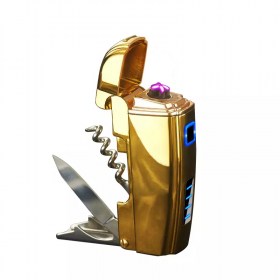 Импульсная USB зажигалка две дуги - мультитул, нож, штопор, открывалка, золотая