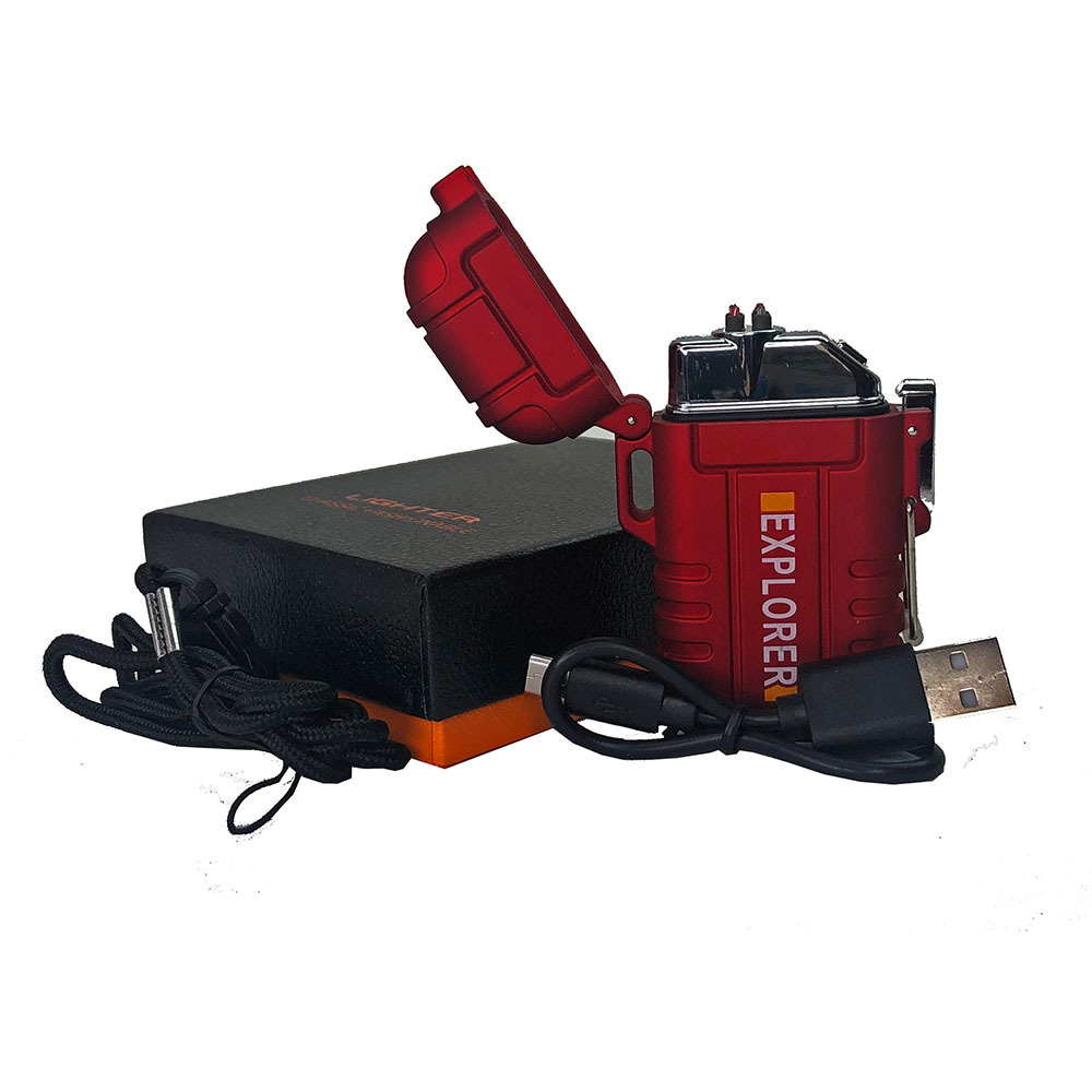 Импульсная USB зажигалка две дуги, ветрозащитная LIGHTER (красный)