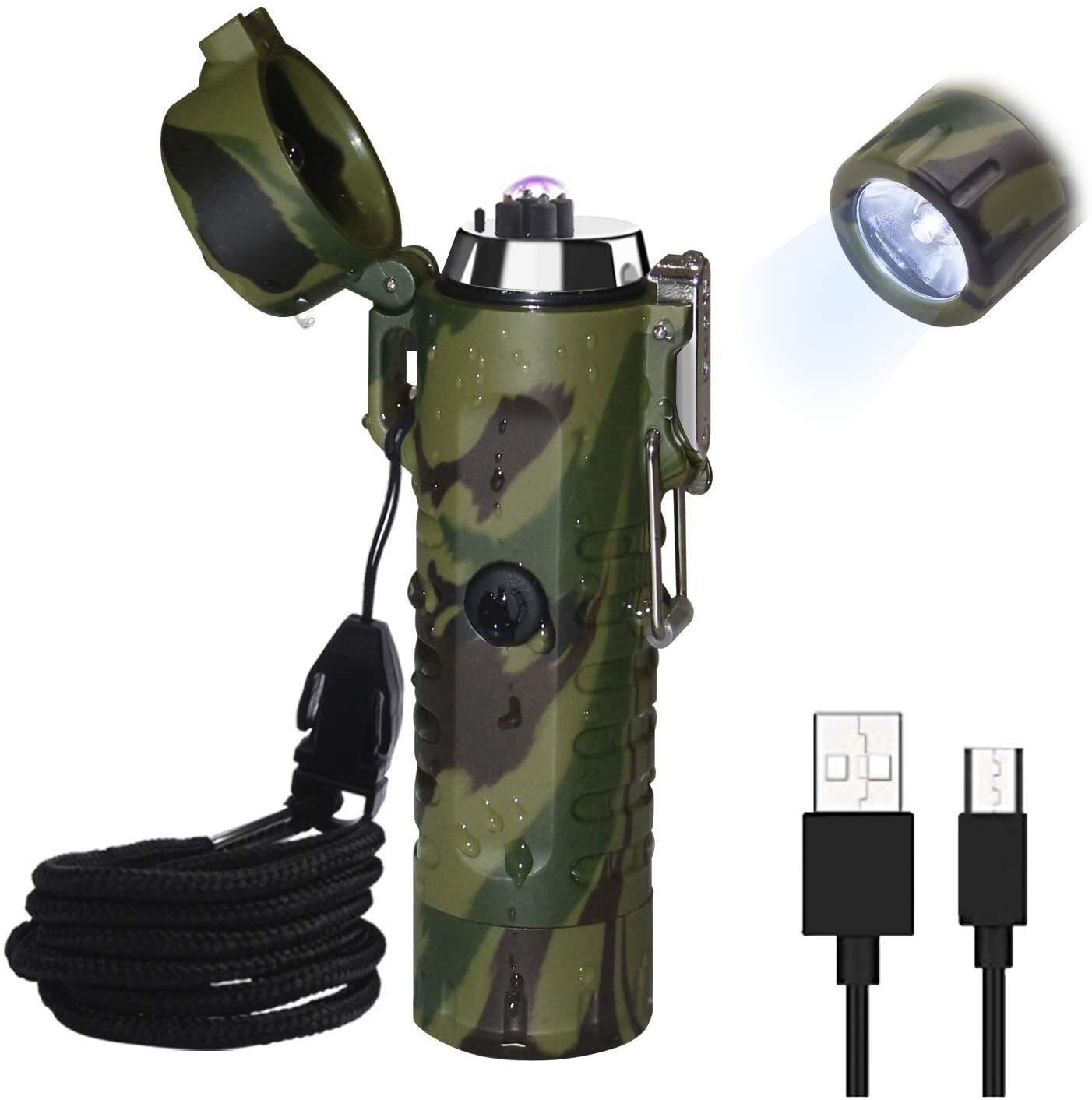 Импульсная водонепроницаемая USB зажигалка F16, двойная дуга + фонарь, камуфляж