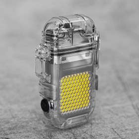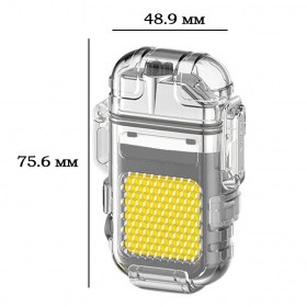 Сама зажигалка находится в очень прочном прозрачном водонепроницаемом корпусе, который имеет защиту IPX7, что означает, что вещь имеет высокий стандарт защиты от пыли и попадания влаги. Устройство выдерживает временное погружение под воду на глубину до 1 метра. (Примечание: пожалуйста, обязательно застегивайте предохранитель, когда не используете зажигалку/при вероятности погружения в воду).