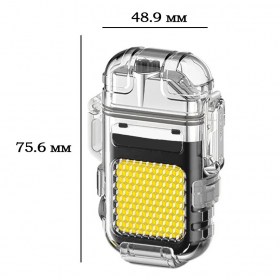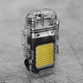 Сама зажигалка находится в очень прочном прозрачном водонепроницаемом корпусе, который имеет защиту IPX7, что означает, что вещь имеет высокий стандарт защиты от пыли и попадания влаги. Устройство выдерживает временное погружение под воду на глубину до 1 метра. (Примечание: пожалуйста, обязательно застегивайте предохранитель, когда не используете зажигалку/при вероятности погружения в воду).
