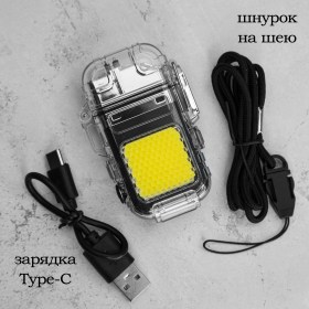 Комплектация: фирменная коробка, зажигалка-прожектор, кабель USB Type-C, ремешок на шею, руководство по использованию зажигалки (инструкция).
