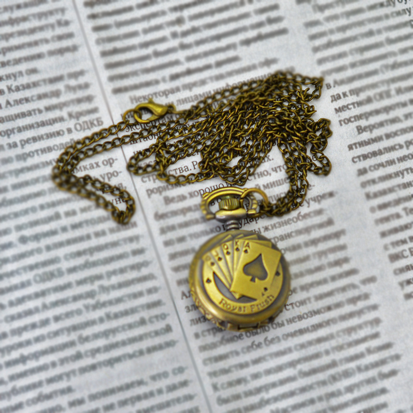 Оригинальные карманные часы на цепочке в металлическом корпусе .Задняя крышка богато украшена гравированным растительным орнаментом.Стильный акцент винтажного образа и оригинальная идея для подарка!