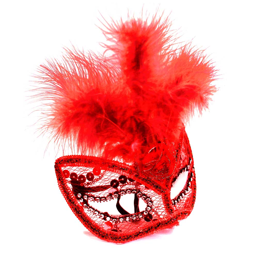 Карнавальная маска 3 пера и бант (детская) красная