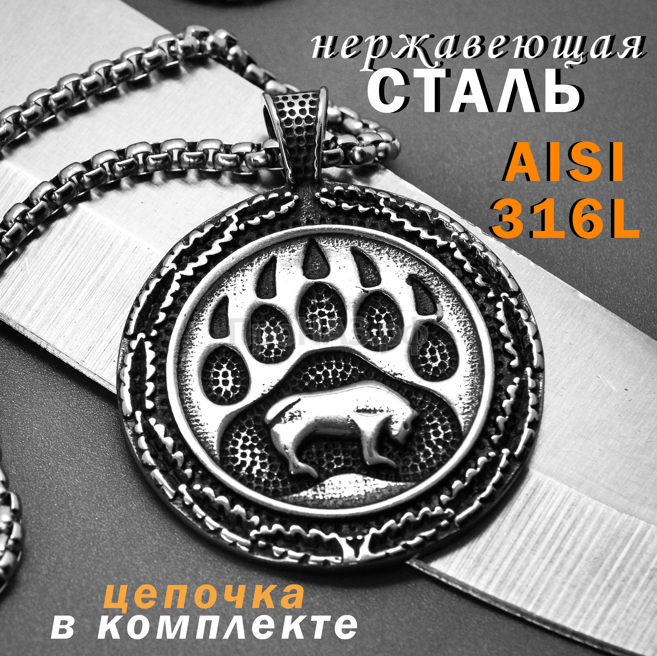 К кулону прилагается цепочка (длина 60 см, толщина 2 мм) так же из 100% нержавеющей стали AISI 316;