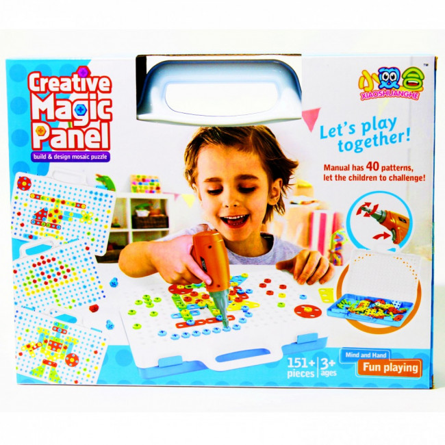 Конструктор-мозаика Creative Magic Panel 151 деталь с шуруповертом - это развивающий конструктор как для мальчиков, так и для девочек. Развивает творческое мышление, воображение, мелкую моторику пальцев.