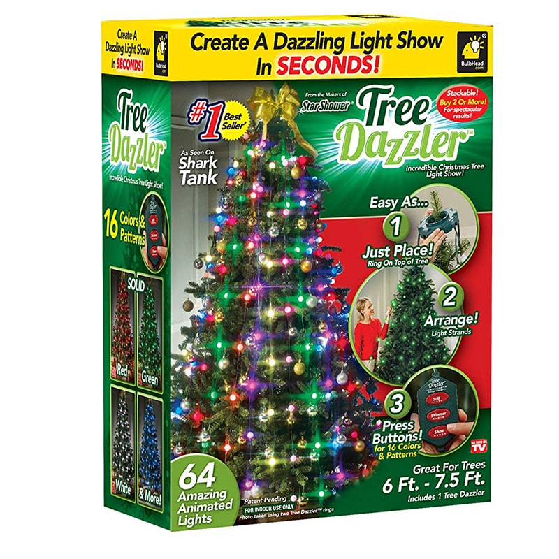 Берет на себя все хлопоты из освещения дерева и его оригинальный дизайн. Если раньше на установку уходили часы, то теперь это занимает всего несколько секунд, свет равномерно распределяется про всей елке, так, что нет никаких темных пятен или пробелов. Имеет три настройки дисплея, которые используют до 16 цветовых комбинаций.