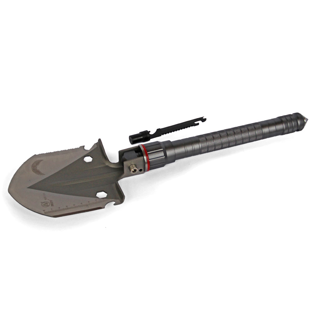 Эргономичная тактическая лопатка – настоящее спасение для туристов, которые не хотят или не могут носить с собой полноценный набор инструментов для выживания. Она многофункциональна: разбирается на дополнительные инструменты.