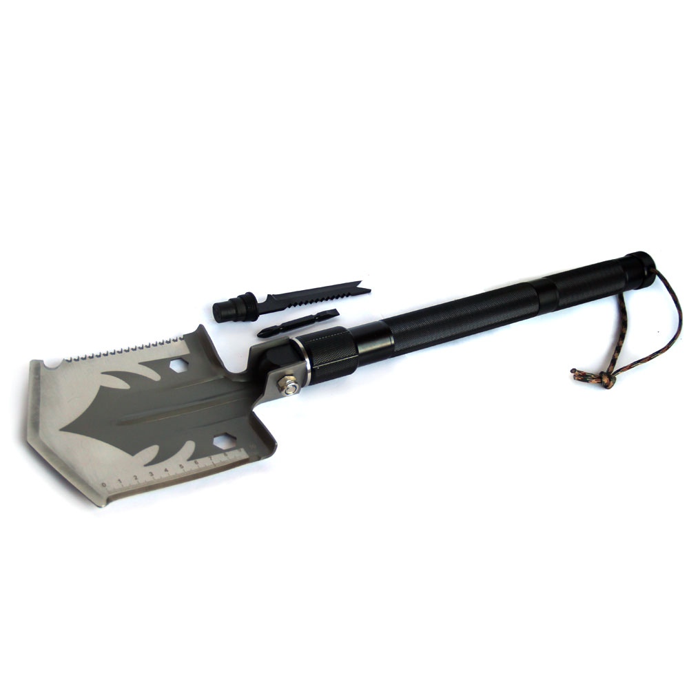 Лопата многофункциональная (топор, пила, кирка, нож), благодаря небольшим размерам не займет много места в багажнике автомобиля, кофре квадроцикла, рюкзаке. В лопате есть место для организации набора выживания в герметичной полости внутри рукояти. Нержавеющая, толстая, прочная сталь.