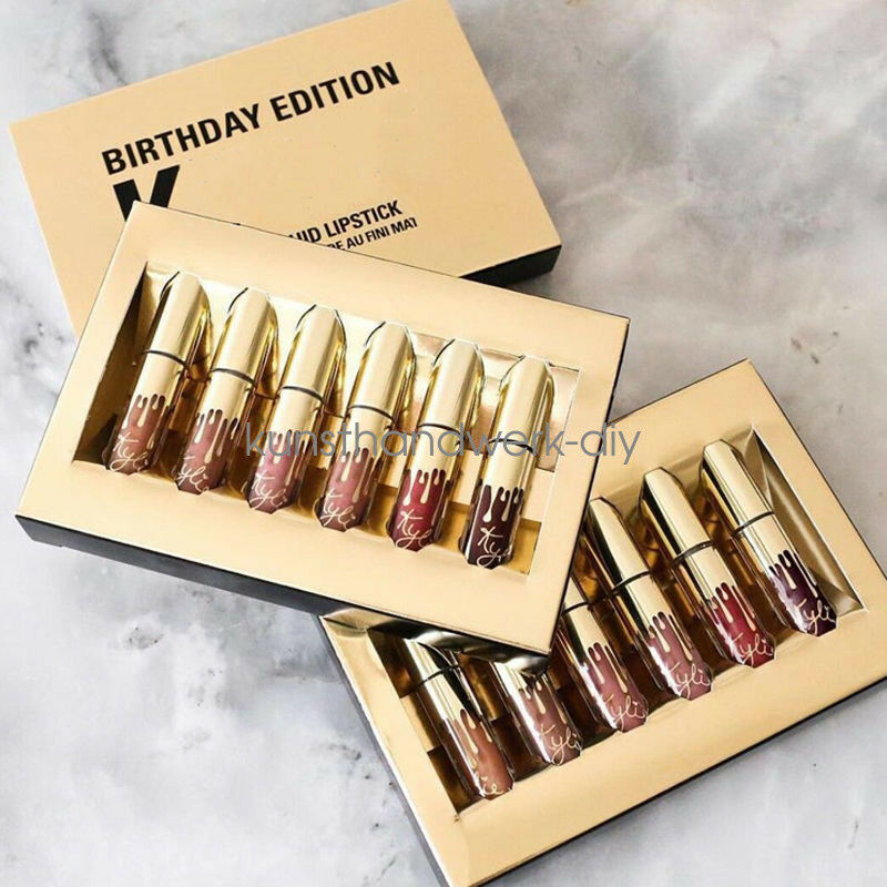 Матовая помада Kylie представлена в наборе 6 оттенками, поэтому таким подарком легко можно угодить любой красавице. В праздничном комплекте представлен новый оттенок глубокого бордового цвета, который выделяется среди мягких бежевых и розовых оттенков.
