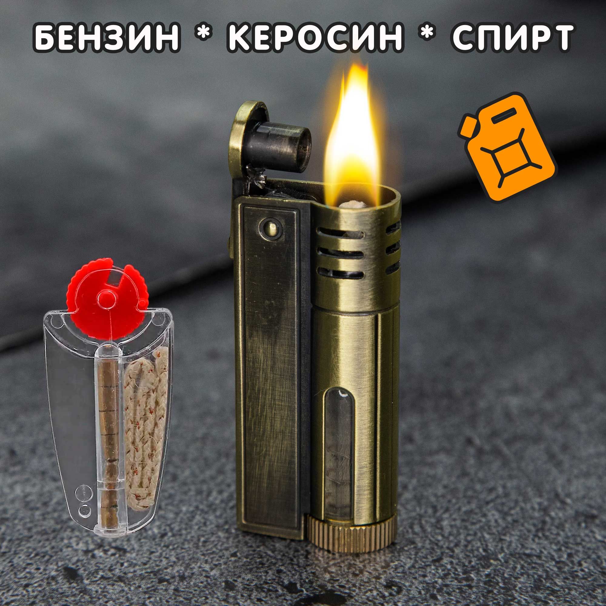 Сверхнадёжная зажигалка в очень прочном металлическом корпусе. С резервуаром для жидкого топлива (3мл), с окошком. Выполнена в ретро стиле.