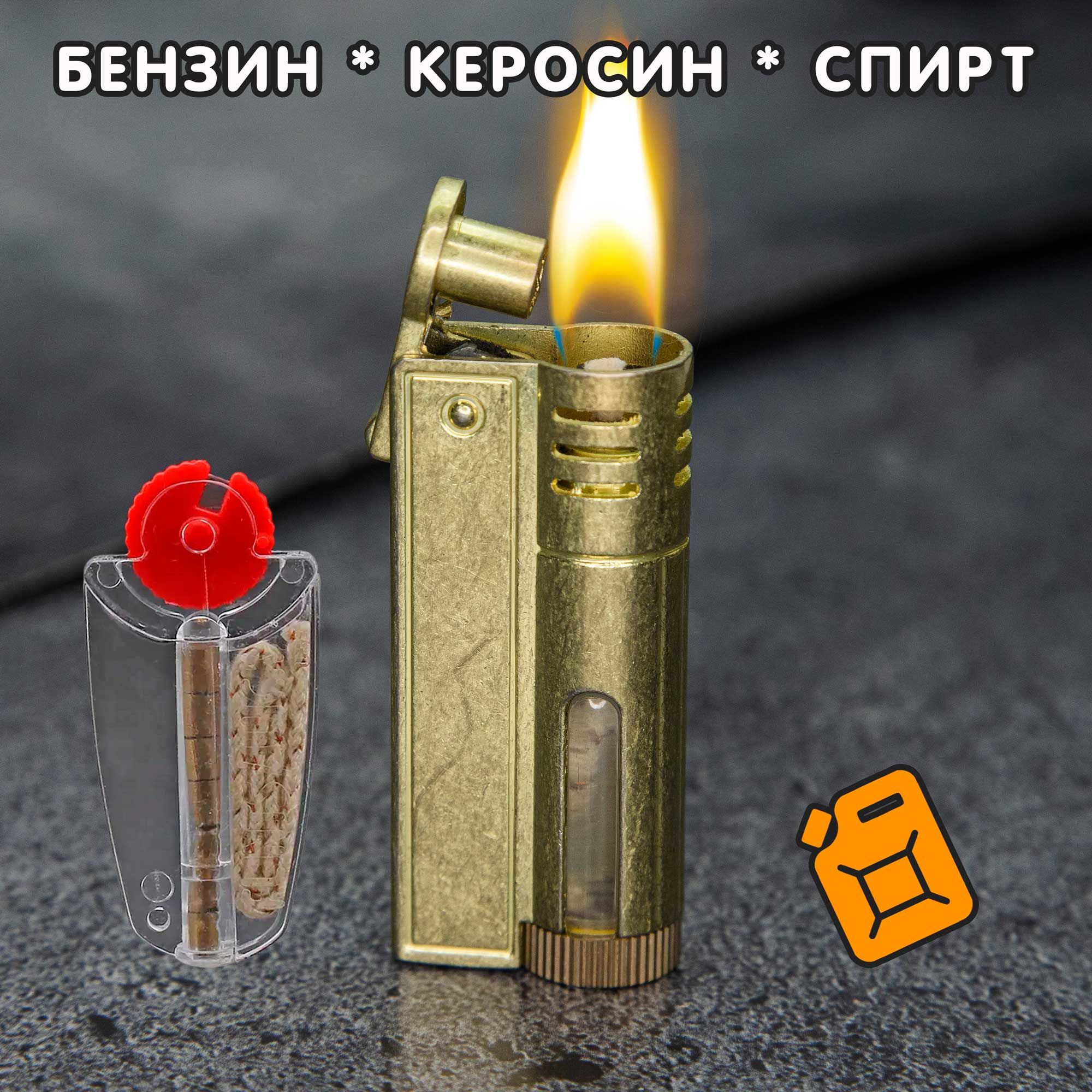 Сверхнадёжная зажигалка в очень прочном металлическом корпусе. С резервуаром для жидкого топлива (3мл), с окошком. Выполнена в ретро стиле.