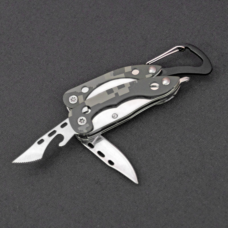 Многофункциональный нож с пассатижами и серейтерным резаком на карабине