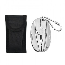 9. Мультитул миниатюрный (плоскогубцы, отвертка, стальная пилка, нож), с цепочкой и чехлом.