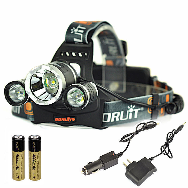 Налобный фонарь Boruit HL-720 (003) — сверх яркий налобный фонарь с основным светодиодом Cree XM–L T6 и двумя вспомогательными светодиодами Cree Q5. Максимальная яркость при работе трёх светодиодов одновременно — 1800 Lumen. Фонарь имеет 3 режима работы (основной, 2 диода, 3 диода) и стробоскоп. В комплект уже входит зарядное устройство от сети, зарядное устройство от прикуривателя в автомобиле и 2 аккумулятора 18650.