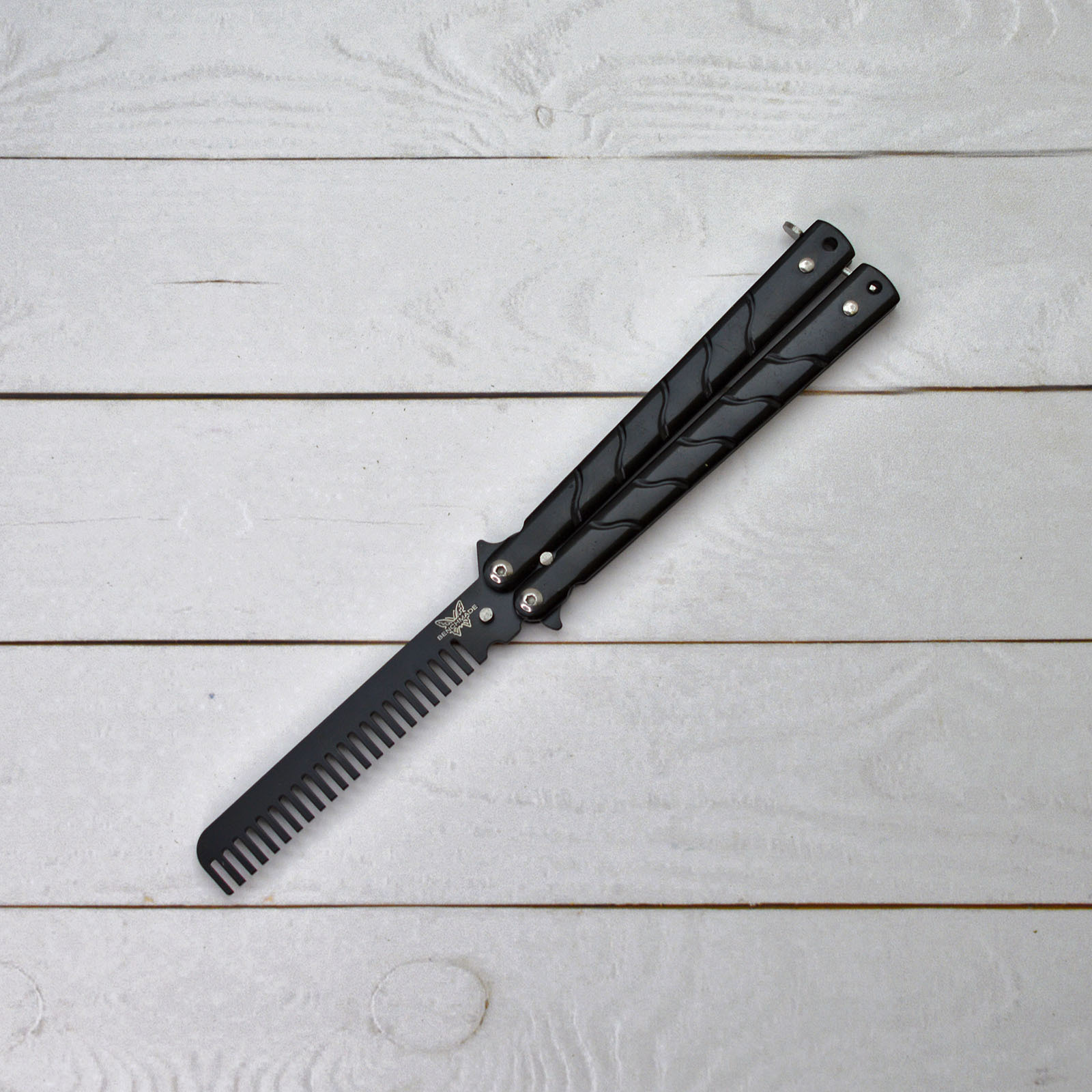 Нож-бабочка складная тренировочная расческа (Балисонг) черный