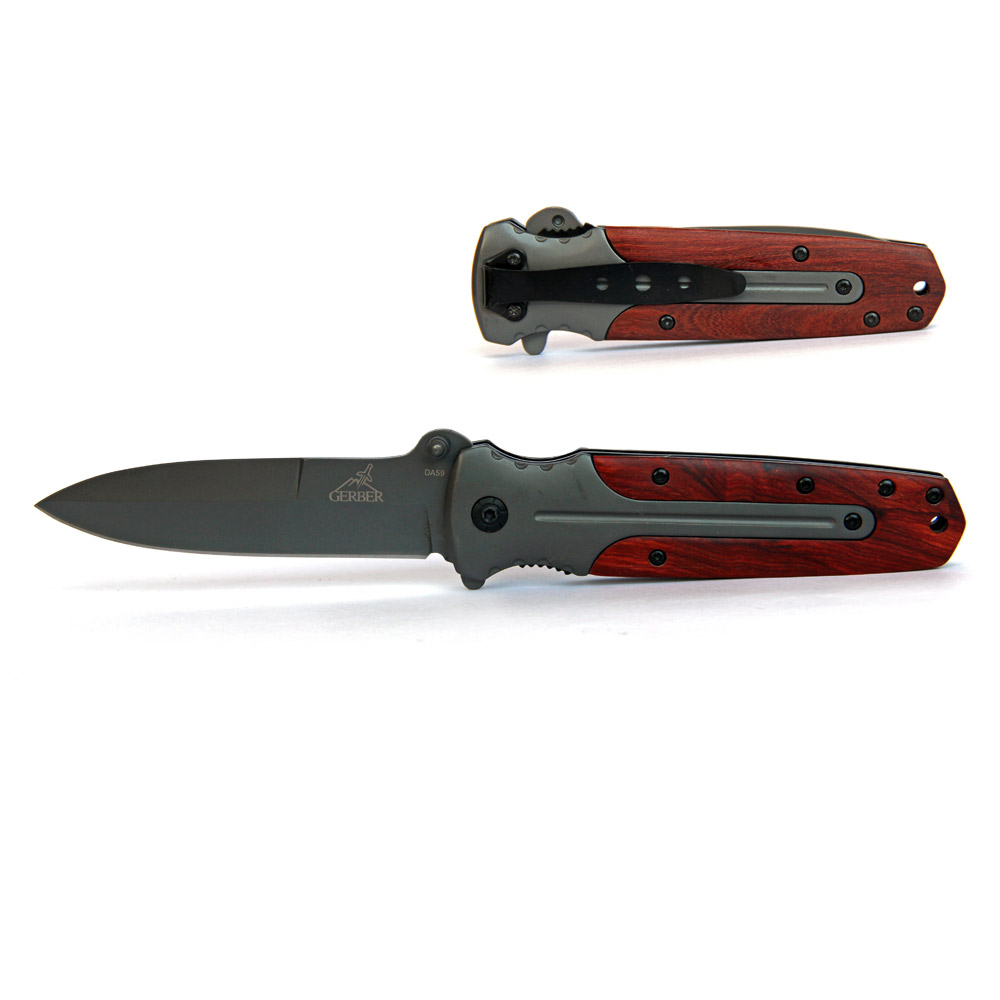 Удобный складной нож. Стильный, надежный, удобный. Деревянная накладка, клипса для ношения на поясе.