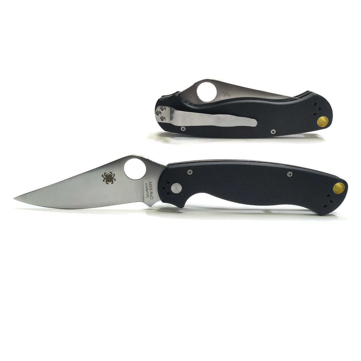 Отличительная особенность модельного ряда в том, что ножи Spyderco имеют размер больше среднего, поэтому они предназначены для людей со средней и крупной ладонью. Лезвия из CPM стали открываются плавным ходом и оснащены спайдерхолом - отверстием для легкого и безопасного извлечения режущей части. Для фиксации клинка в серии Парамилитари используется замок типа Compression Lock.