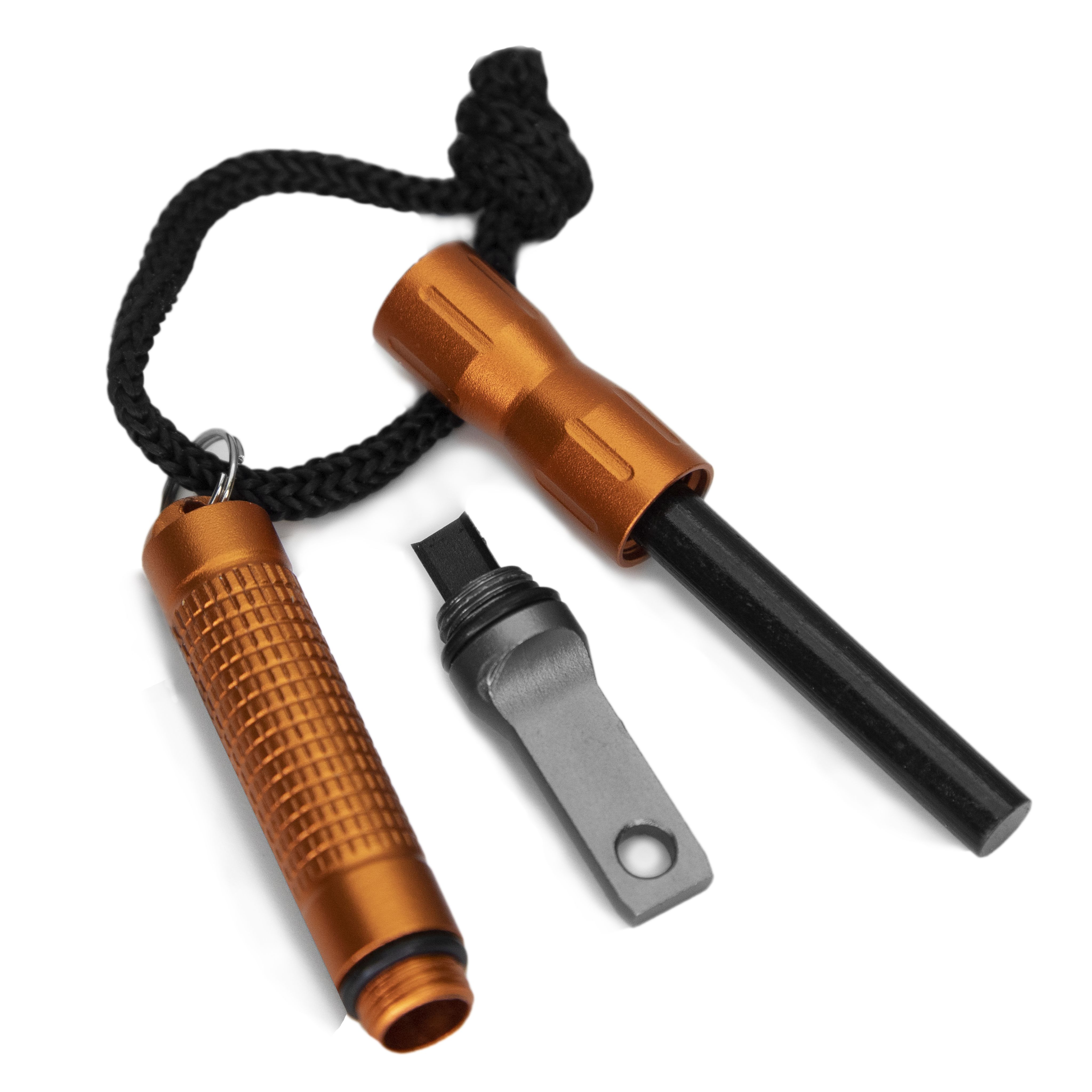 Среднее огниво походное в надёжном алюминиевом цилиндре. Не имеет сроков годности, максимальная надежность. Огниво обязано быть в каждом наборе для выживания!