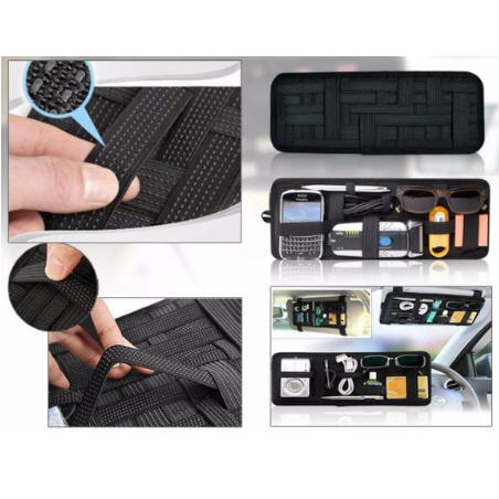 Органайзер аккуратно и удобно вмещает в себя не только необходимые бумаги, но и косметику, очки, гаджеты. Больше не нужно искать необходимую вещь на ощупь в сумке или бардачке, просто откиньте козырек, и она у Вас перед глазами! Органайзер для автомобиля с креплением на козырек оснащен специальными плотными резинками, которые надежно фиксируют любую вещь внутри.